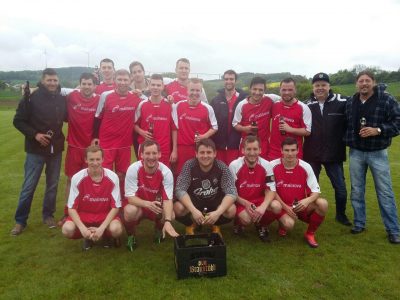 Die zweite Hälfte war recht ereignisarm. Die SG schaltete zwei Gänge runter und lies den Gast spielen, welcher auch zu einigen Abschlüssen kam. Diese entschärfte aber der Torhüter der SG, Johannes von Engelmann. Zweimal davon mit spektakulären Flugeinlagen. Der Gast bemühte sich, war aber vor dem Tor zu harmlos. Die SG ihrerseits kontrollierte das Spiel und hatte gegen Ende auch noch sehenswerte Tormöglichkeiten, aber ein Treffer wollte nicht mehr gelingen. Als der Schiedsrichter das Spiel abpfiff und klar war, dass der Aufstieg geschafft ist, gab es kein Halten mehr. Spieler, Trainer und Betreuer tanzten auf dem Spielfeld und der Coach musste auch die obligatorische Bierdusche in Kauf nehmen. In den verbleibenden drei Spielen hat die SG sogar noch die Möglichkeit, bei voller Punkteausbeute, die Meisterschaft zu holen.
