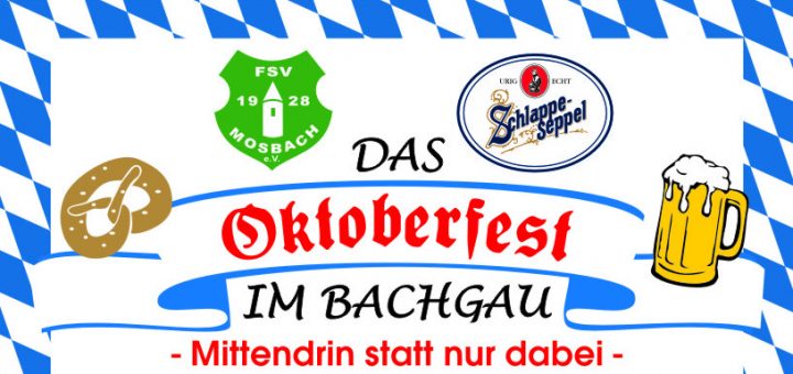 Das Highlight im Oktober: „MITTENDRIN STATT NUR DABEI „Das Oktoberfest im Bachgau“, Am 07. und 08.10.2017 in Mosbach Der FSV Mosbach veranstaltet auch in diesem Jahr, „Das Oktoberfest im Bachgau“ – das größte Fest,...