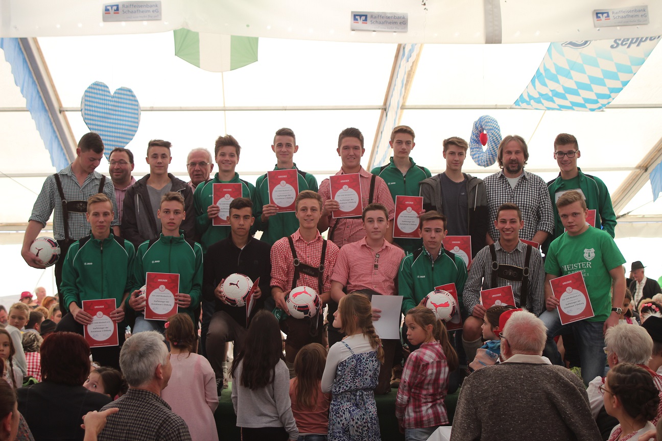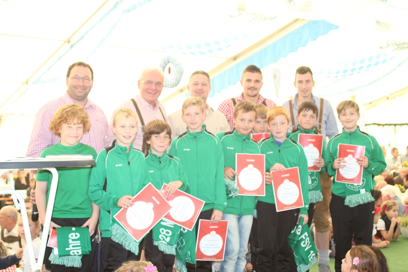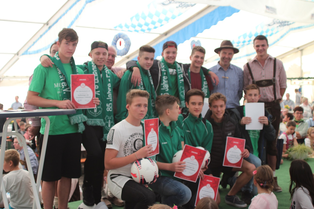 Im voll besetztem Oktoberfestzelt in Mosbach ehrte Bürgermeister Reinhold Hehmann die drei Meister Jugendmannschaften des FSV Mosbach, für ihre Kreisklassen Titel in der Saison 2014/15. Zudem sprach er den Spielern und den Vereinsverantwortlichen Dank und Anerkennung für die ausgezeichnete Jugendarbeit aus und spornte zu weiteren Erfolgen an. Mit dem Jugendmanager Frank Kurz überreichte Bürgermeister Reinhold Hehmann den Jugendlichen, Betreuern und Trainer die Urkunden des Hessischen Fußballverbandes, dazu gab es noch Fußbälle und Schals des FSV Mosbach.