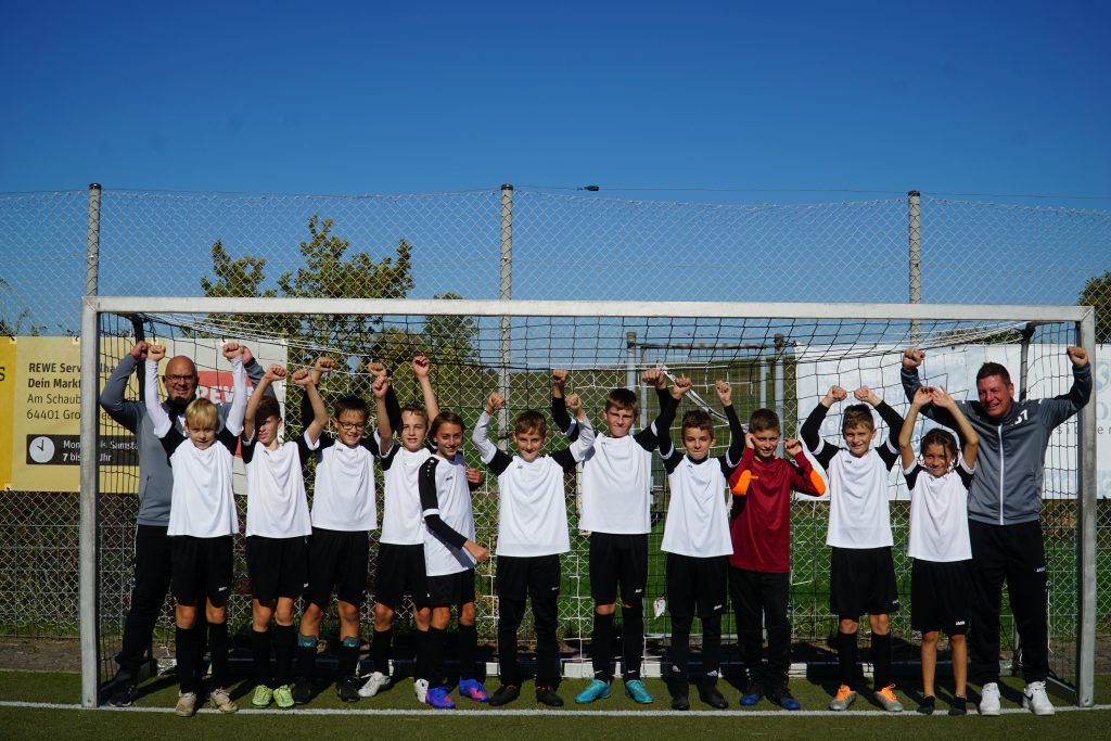 Im letzten Spiel der Quali konnte unser Team die Leistungen der letzten Spiele wiederholen und konnte einen ungefährdeten und zu keiner Zeit gefährdeten 6:1 Sieg einfahren. Der Gegner wurde spielerisch und läuferisch beherrscht und es wurde keine Chance zugelassen. Nach einem sehr schönen Zuspiel von Emil konnte Linus den Ball zum 1:0 für uns einschieben. Es wurden weiter zahlreiche und klare Chancen rausgespielt , die jedoch vom sehr guten gegnerischen Torhüter entschärft wurden oder von unserer Seite nicht konzentriert abgeschlossen wurden. So ging es mit der 1:0 Führung in die Halbzeit! Einen top Start in die 2. Halbzeit hatte unser Capitano Emil, der nach schöner Einzelleistung zum 2:0 abschloß. Nun lief es wie am Schnürchen und wir erhöhten durch Filipe , Linus und Emil innerhalb von 7 Minuten auf 5:0. Der Gegner hatte in dem Spielabschnitt nur noch eines im Sinn und das war, den Ball klären klären klären. Wir haben weiter sehr gute Chancen rausgespielt und Freddy war es, der nach tollem Solo zum 6:0 einsetzte. Jetzt warteten alle auf den Abpfiff und eine Unkonzentriertheit und ein Sonntagsschuß des Gegners stellte den 6:1 Endstand her! Es war ein spielerisch sehr gutes Spiel und eine überragende Qualifikationsrunde. Mit nur 1 Gegentor bei 28 erzielten Treffern haben wir mit 12 Punkten die maximale Ausbeute und der 1. Platz in der Gruppe ist uns nicht mehr zu nehmen.
