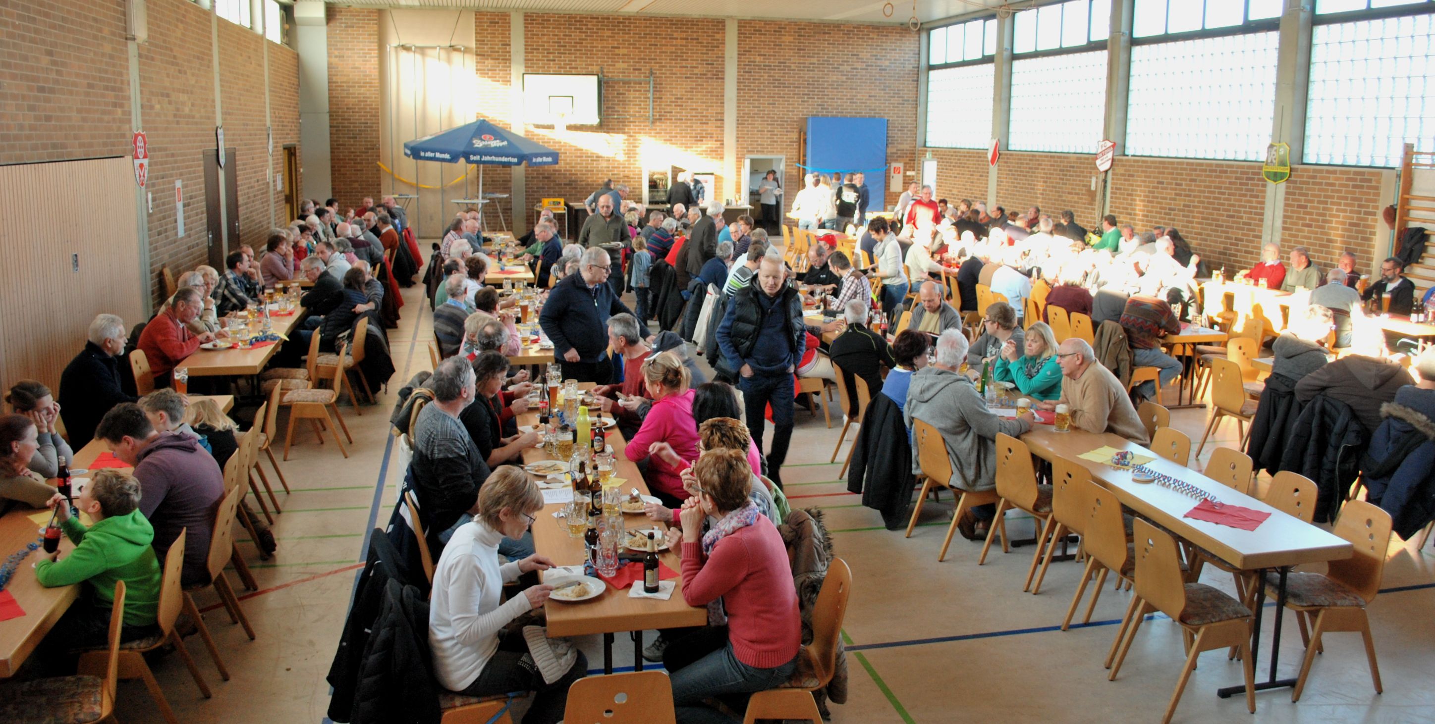 Gut besuchtes Ziel der Bachgau-Sternwanderung – die Mehrzweckhalle Mosbach